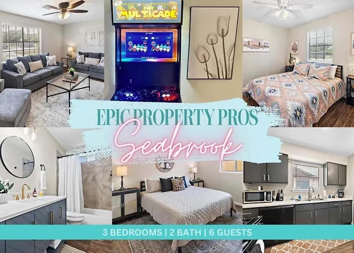 Nestled along the tranquil shores, the Sandy Private Beach Oasis Close To Kemah Boardwalk & NASA 5 Star Super Host offers a serene retreat just a short drive from the vibrant attractions of Houston. The oasis is conveniently located 35 km from William P. Hobby Airport, making it an ideal escape for travelers seeking both relaxation and adventure. Guests can revel in the soothing sounds of the ocean while being within reach of the bustling Kemah Boardwalk.